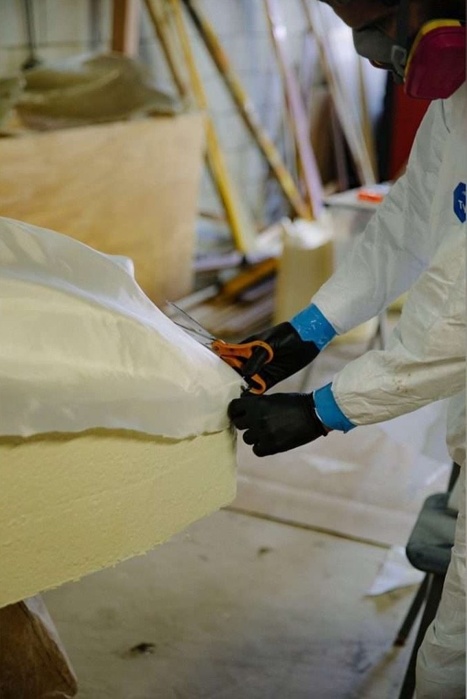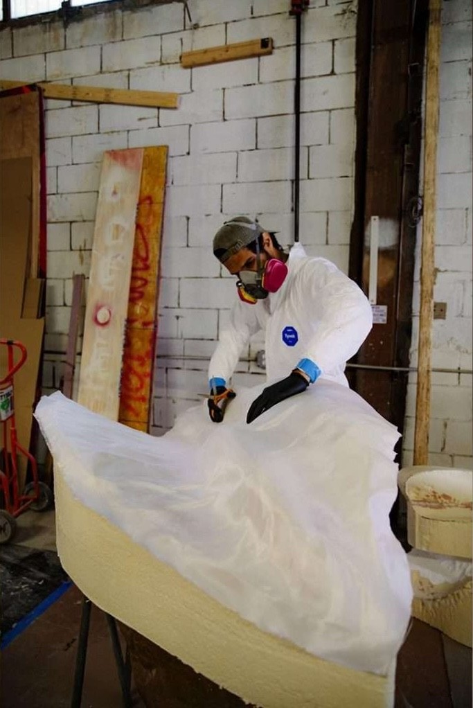 Made entirely of fiberglass and resin, the piece was cast in custom foam-sculpted molds, designed and crafted in-house.