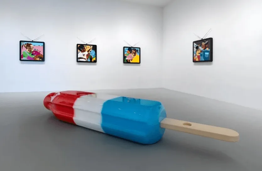 A functional piece featured in New York-based artist Derrick Adams’ sixth solo show. The first in a series of eight unique pieces, it was displayed at the Rhona Hoffman Gallery in Chicago, with additional works exhibited at the Gagosian Gallery in NYC.