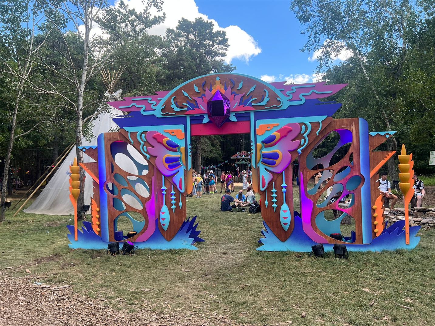This stunning gateway project for Elements Festival blends geometry and organic forms, highlighted with vibrant, cartoon-inspired colors. The design creates a welcoming entrance to the Healing Gardens.