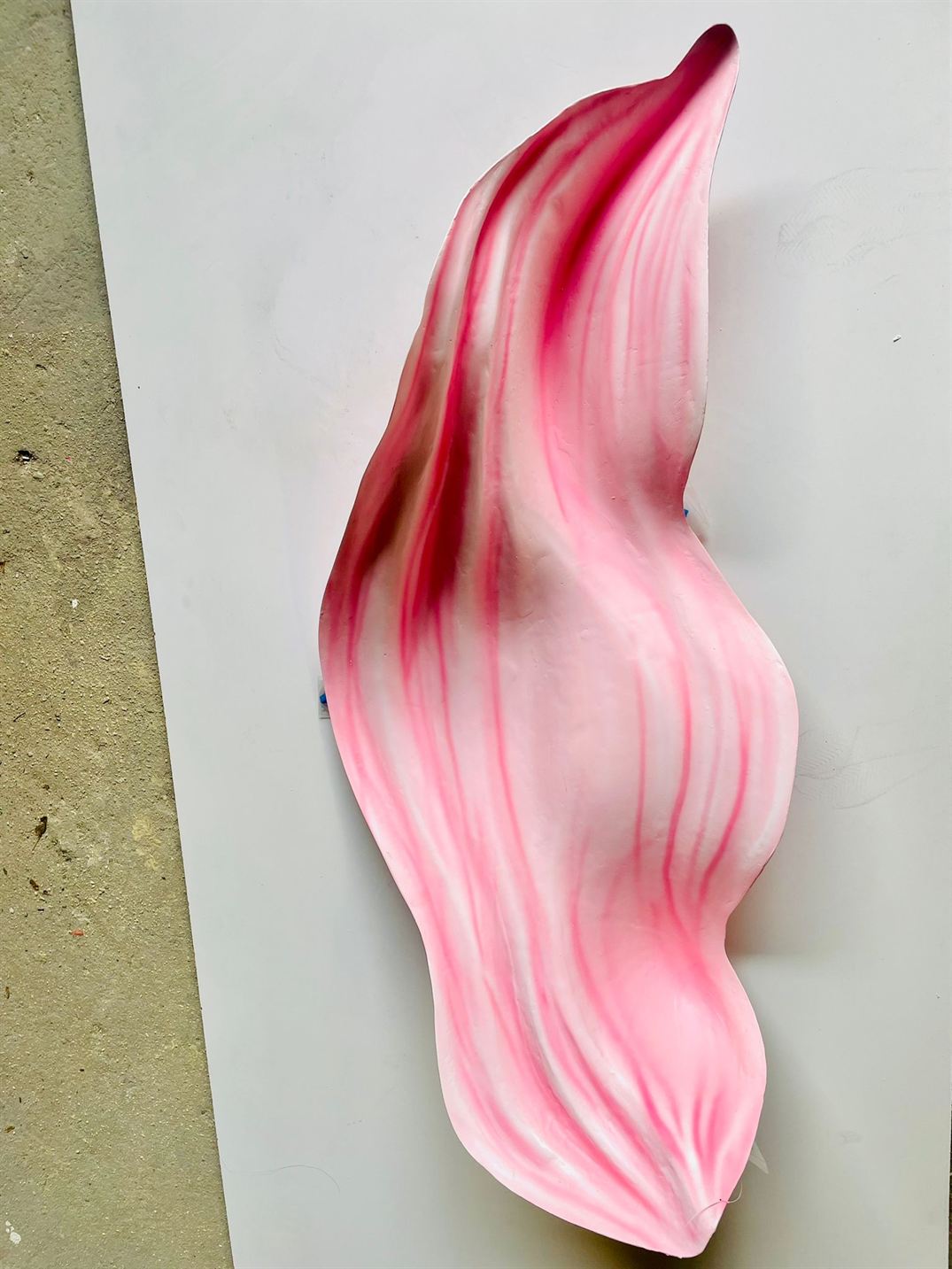 Each fiberglass petal was custom-molded and hand-painted, with a laser-engraved oak pedestal completing the design.