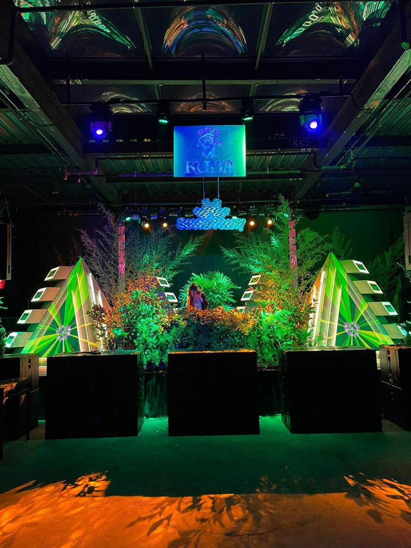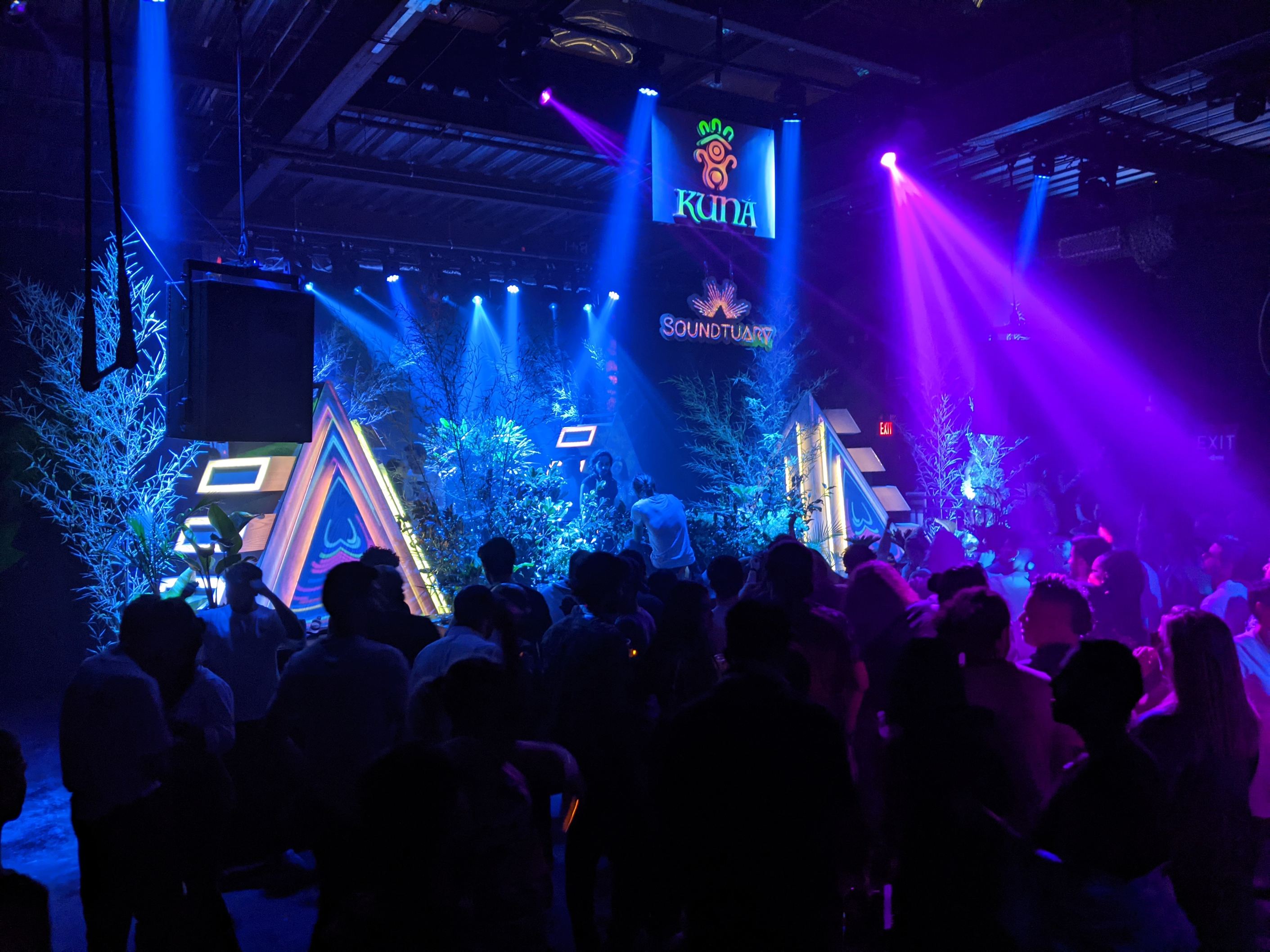 Stage built for Brooklyn-based Kuna Collective and presented at two separate events at the King’s Hall Avant Gardner venue and once at the Brooklyn Monarch. The stage is based on an inverted pyramid concept with a symmetrical roof structure. It includes programmable lights as well giving this stage a very edgy ancient meets futuristic look. Constructed of mostly plywood and acrylic with a steel frame inside.