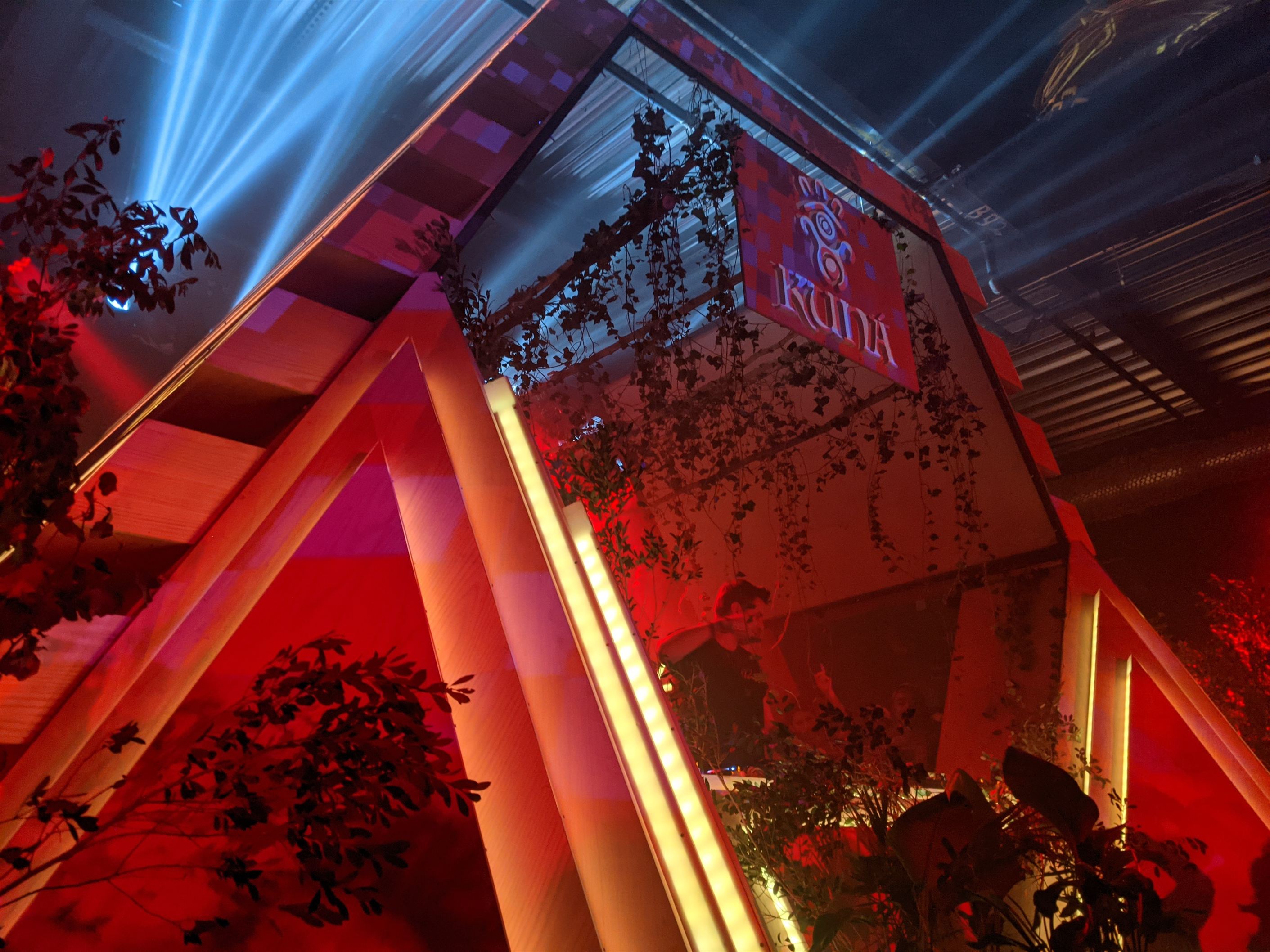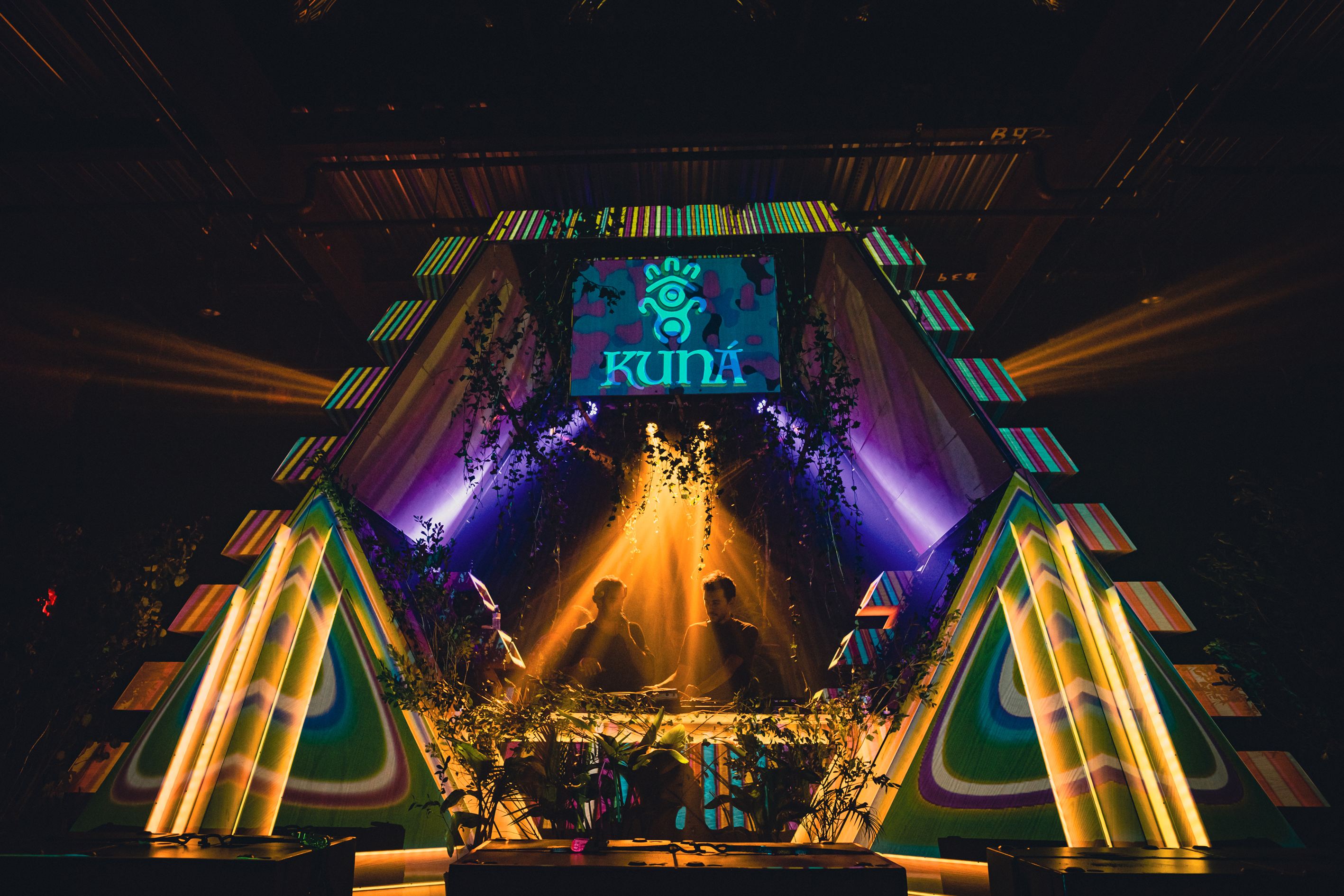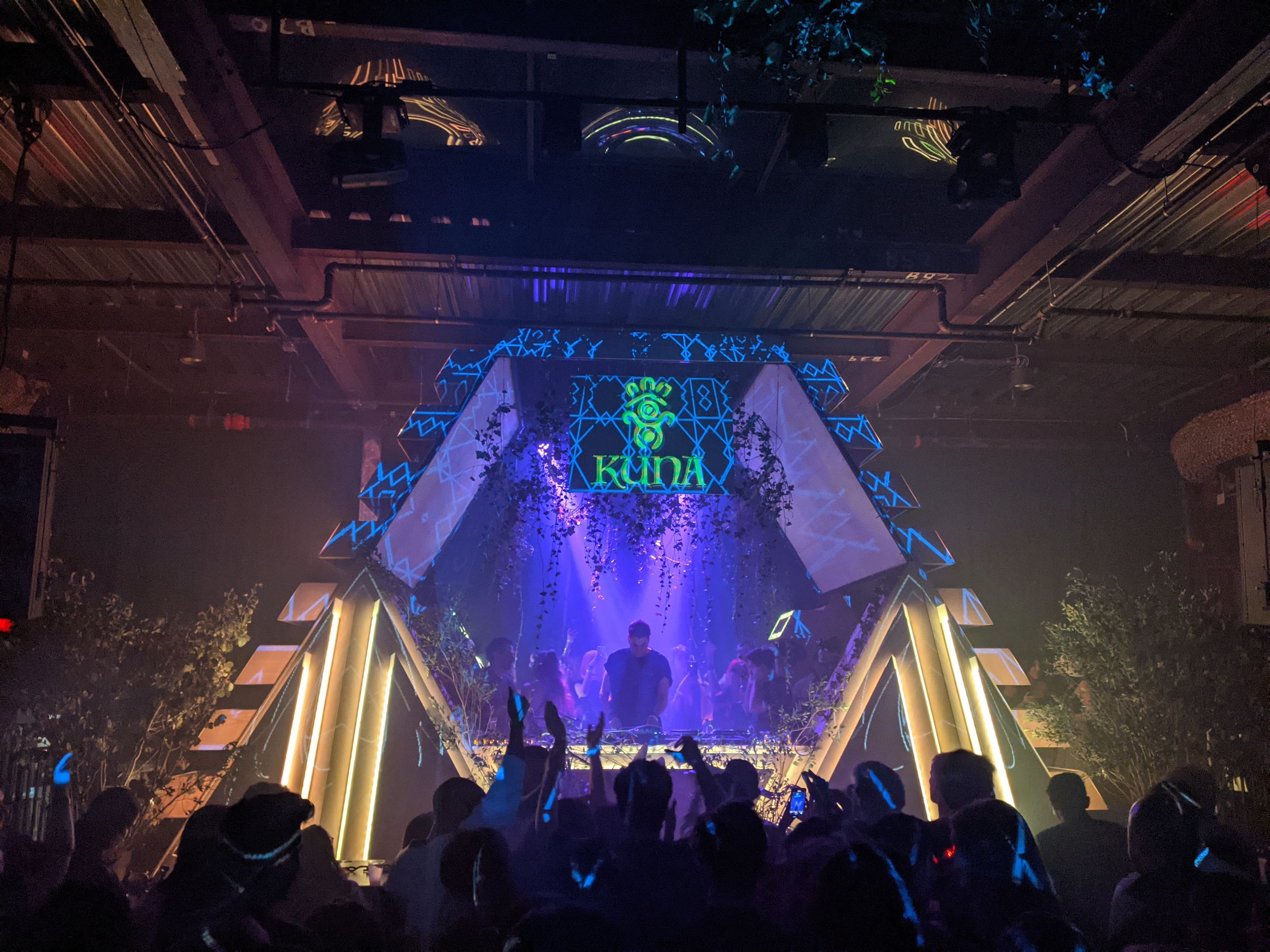 Stage built for Brooklyn-based Kuna Collective and presented at two separate events at the King’s Hall Avant Gardner venue and once at the Brooklyn Monarch. The stage is based on an inverted pyramid concept with a symmetrical roof structure. It includes programmable lights as well giving this stage a very edgy ancient meets futuristic look. Constructed of mostly plywood and acrylic with a steel frame inside.