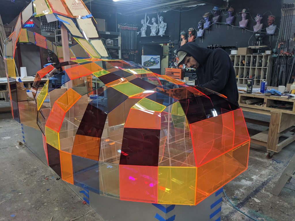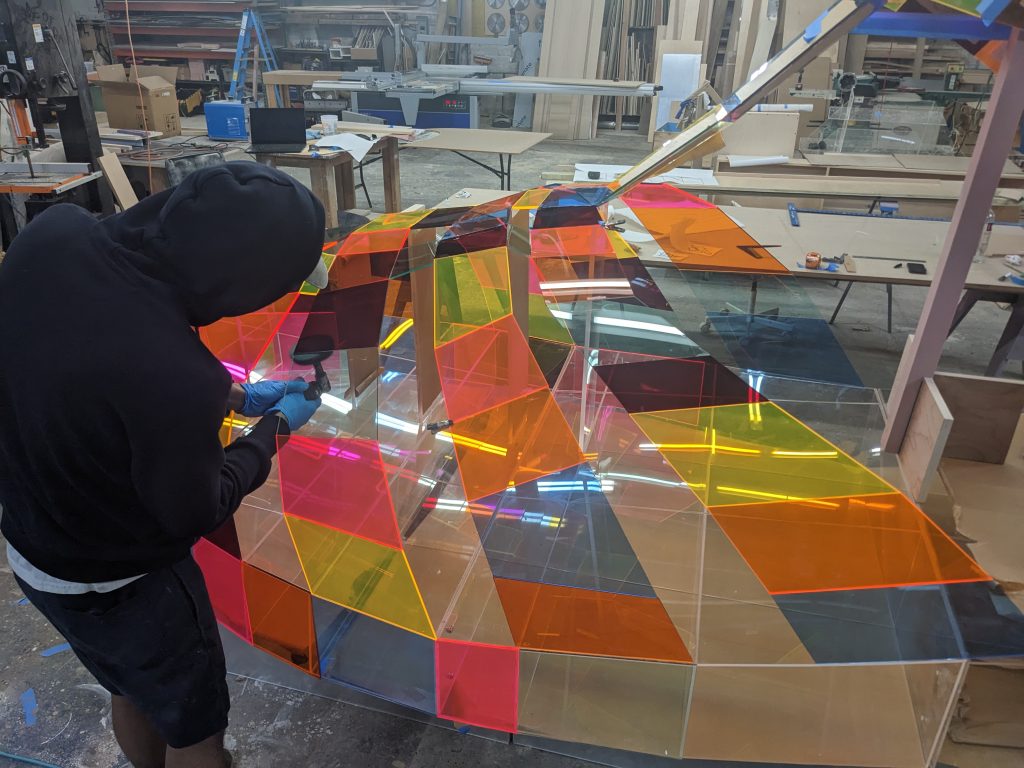 Engineered for structural stability, the build required precise calculations and modeling. Each tile was individually mitered and hand-glued for a flawless finish.